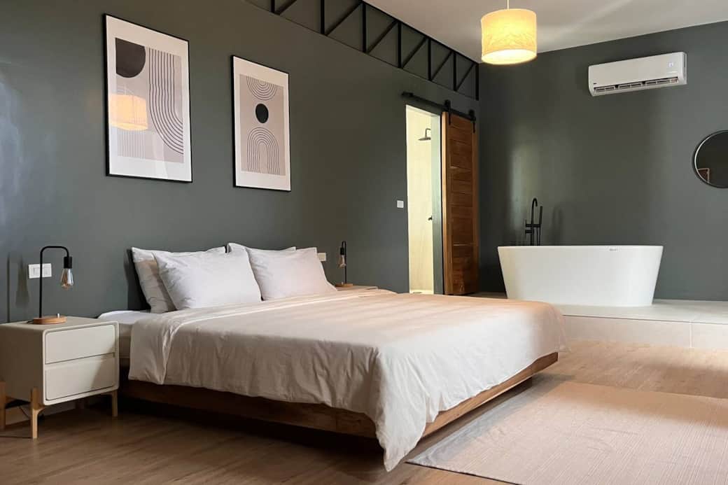 This stylish place to stay is perfect for group trips. Providing 3 bedrooms that can accommodate up to 6 persons with a total indoor area of 300m2. Our huge pool with terrasse offer every day a unique view on the sunset by the hills of general Luna. Every morning a DIY complete breakfast is provided to start your day in one of the most luxurious villa of the island